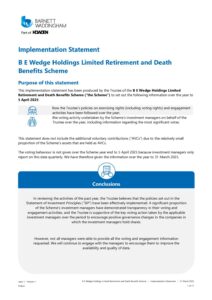 You can download below the B E Wedge Holdings Limited Retirement and Death Benefits Scheme Implementation Statement and Privacy Notice.